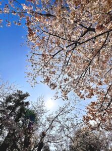 病院前に桜の木がありますが、